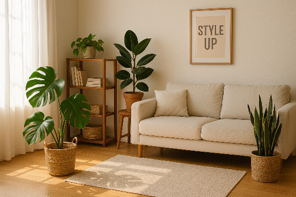 👉 낮은 소파엔 낮은 화분, 높은 선반 옆엔 키 큰 식물이 어울려요.