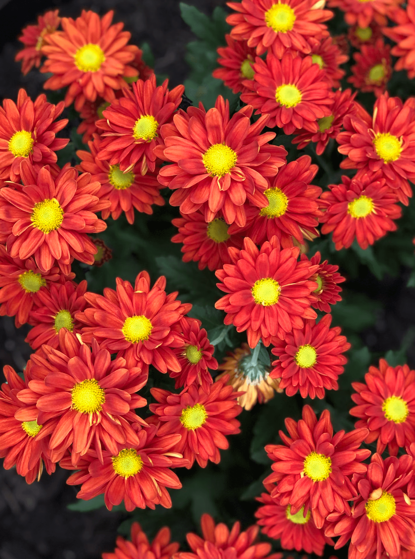 국화는 크기가 작은 쿠션 국화부터 거대한 거미 국화까지 다양한 품종이 있으며, 노랑, 라벤더, 핑크, 보라, 빨강, 청동, 오렌지, 흰색 등 거의 모든 색상의 꽃을 피웁니다. 잎은 사랑스러운 파란색/녹색이며, 가을에 가장 화려하게 꽃을 피웁니다. 국화는 색상별로 다른 의미를 가지고 있습니다. 예를 들어, 노란색 국화는 슬픔과 절망을, 흰색 국화는 순수와 진실을, 붉은색 국화는 사랑과 열정을 상징합니다.
